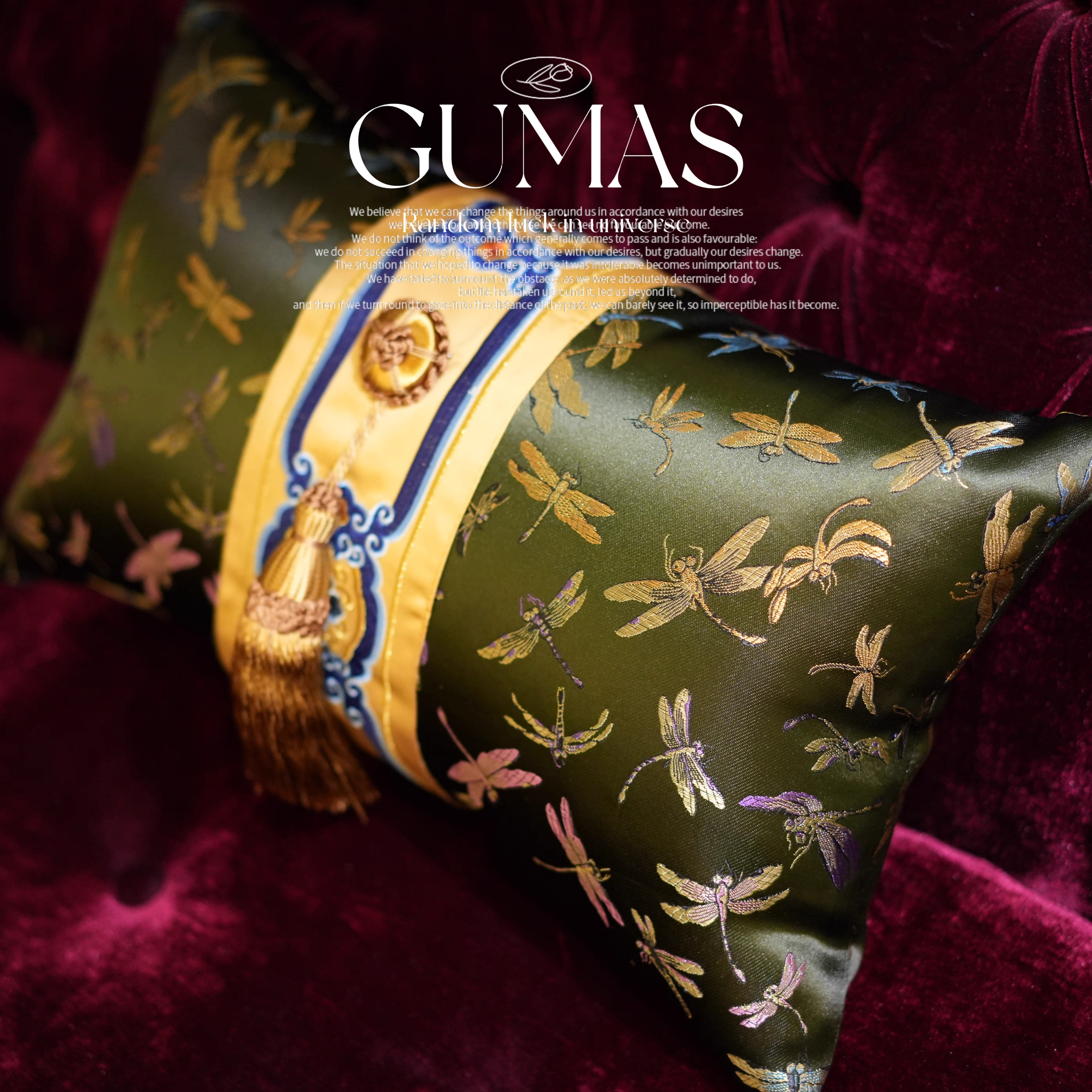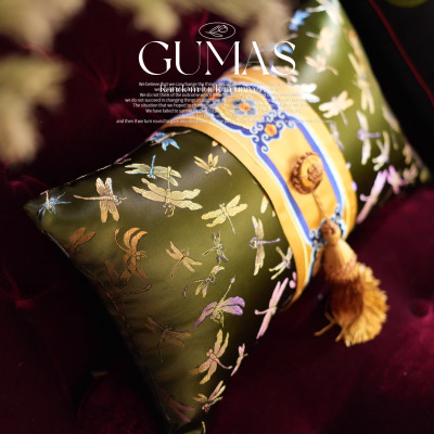 Crafted from high-quality jacquard brocade with an elegant dragonfly motif, this pillow features a Chinese-style auspicious cloud band and tassel accents for a distinctly handcrafted feel. Whether on the sofa, in the bedroom, or in a study, it adds a refined New-Chinese aesthetic to any space.