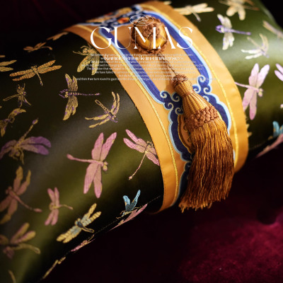 高质量提花织锦缎,面料搭配精美蜻蜓花样,配以中式祥云腰带与流苏点缀,手工质感满满。无论是沙发、卧室还是书房,都能为空间增添典雅格调