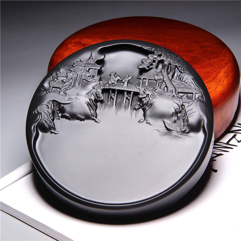 这款砚台甄选优质歙砚石材,由当代非遗艺术家匠心呈现,质地坚韧细腻,润而不滑,磨墨细腻顺畅。表面雕刻精美山水纹样,古雅大气,兼具实用与观赏价值。既能磨墨书写,助力文房雅事,又承载收藏意义,摆放案头,尽显东方文化气韵与匠心之美,是馈赠与自用的臻品之选。