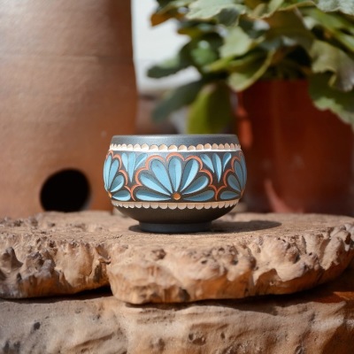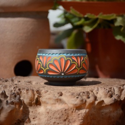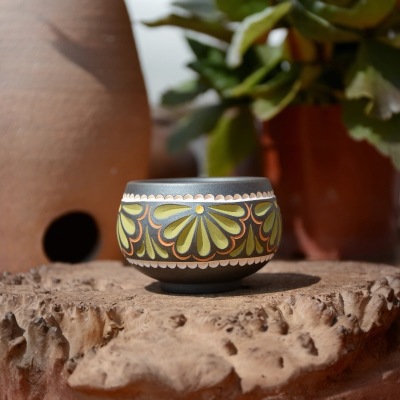 Entirely handmade with natural mineral pigments, this Dai pottery teacup is thrown using the traditional slow-wheel technique and finished with hand-carved textures—craftsmanship that modern mass production cannot replicate. The cup has a full, rounded silhouette and a warm, refined handfeel. Painted motifs draw from ethnic traditions, featuring a bright yet elegant palette that expresses a distinct Eastern aesthetic. Practical for daily tea service and equally suited as a collectible art piece, it adds cultural charm and quiet sophistication to any space.