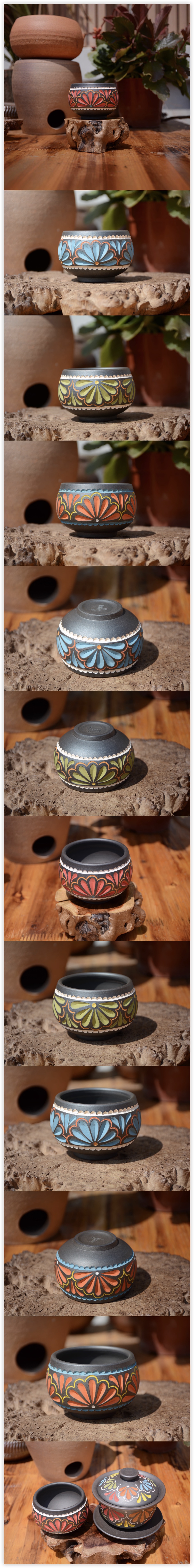 产品均为纯手工,纯天然矿物质颜料,傣族慢轮古法拉胚,纯手工雕刻纹理,是现代机器制造无法替代的。这款傣陶茶杯由匠人纯手工制成,器型饱满圆润,手感温润细腻。彩绘图案以民族传统元素为灵感,色彩明快典雅,展现独特的东方艺术气韵。既是品茗的实用佳器,更是一件极具收藏价值的艺术摆件,点缀家居空间,增添自然与人文的雅致氛围