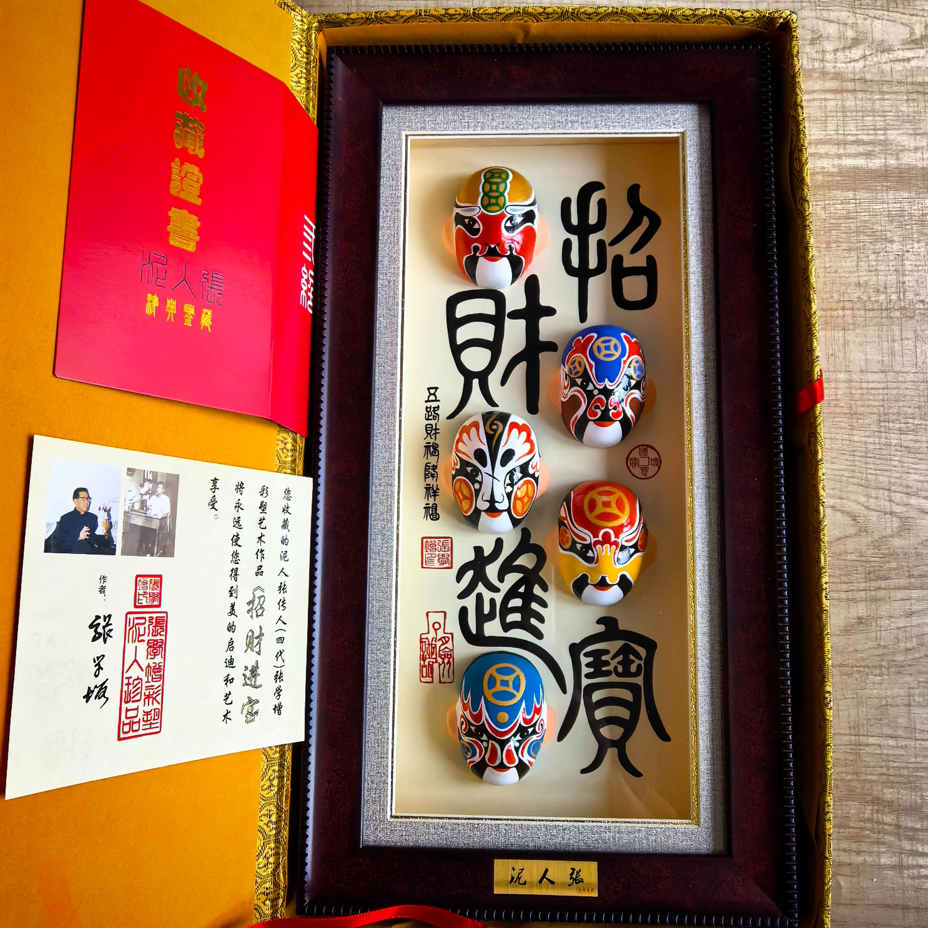 Originating from China’s renowned intangible-heritage craft “Niren Zhang” (Zhang Family Clay Figurines), this piece is created by a fourth-generation inheritor. Featuring Peking Opera mask motifs, it is vividly modeled and richly colored—symbolizing blessings, prosperity, and harmony at home. Each item is hand-painted with meticulous detail, offering both artistic appeal and collectible value.