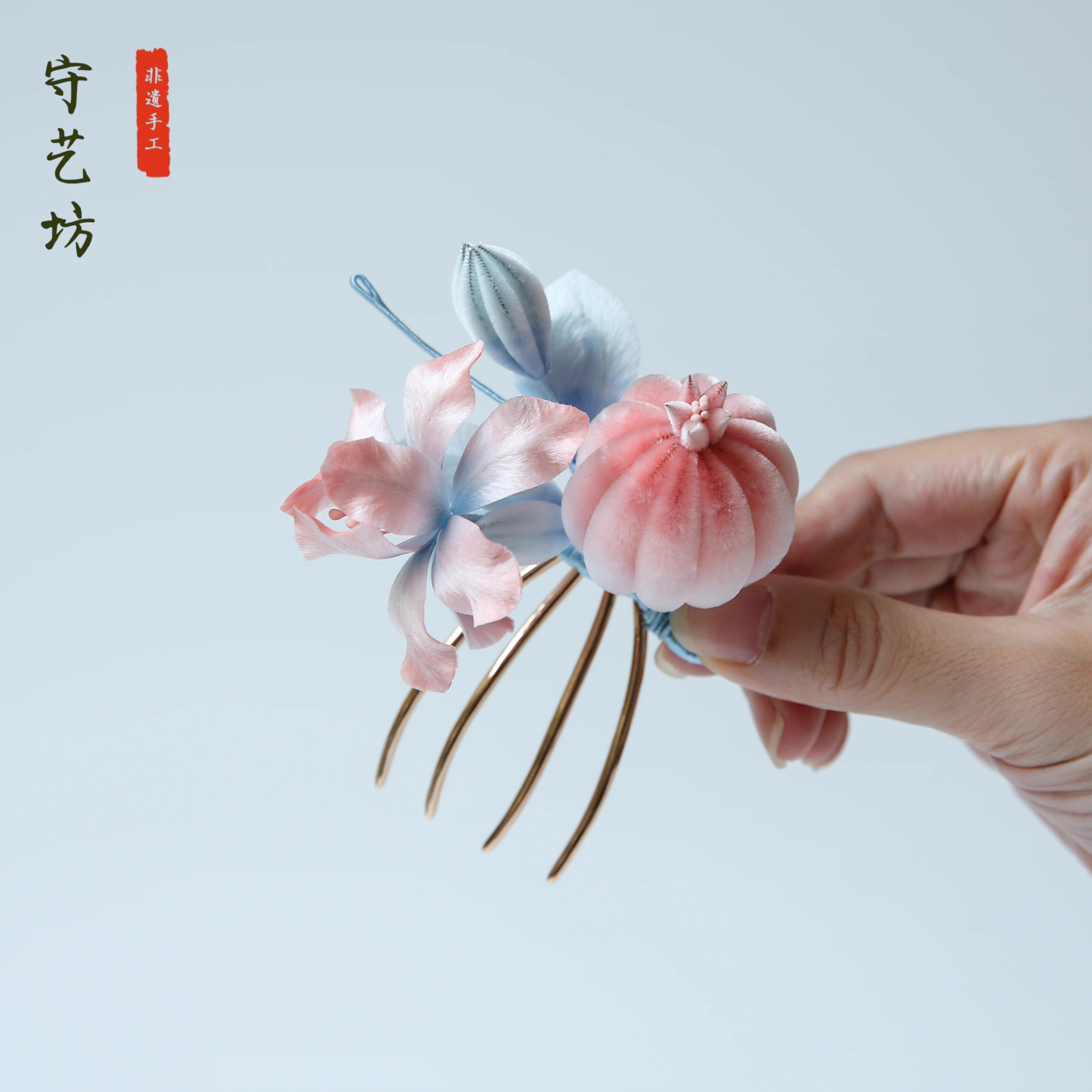 石榴花是我们绒花系列中最具喜气的选择。由匠人以传统缠裹盘扎工艺精制为成品绒花,开盒即用;色泽热烈、层次立体、久放不褪。