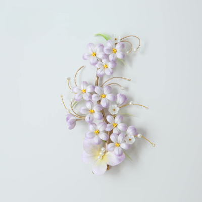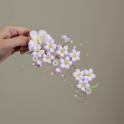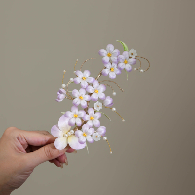 在花语与文化中,桃花象征爱情、新生、吉运与美好姻缘;蝴蝶寓意喜讯、相伴与蜕变。花蝶相映,寄予好事将至、良缘天成、甜蜜长久的祝福。 适合订婚婚礼(新娘造型/伴娘)、纪念日、节庆礼赠、写真舞台等场合;以传统手工融入现代审美,在日常与典礼间都可优雅生花。 The Peach Blossom & Butterfly Ronghua Hair Ornament is tender and radiant. Handcrafted with the traditional wrapping-and-binding technique, it arrives ready to wear—lightweight and comfortable, sculptural in layers, and colorfast. Perfect as a bridal headpiece, hairpin, hair clip, or corsage, it brings a touch of spring to your style.